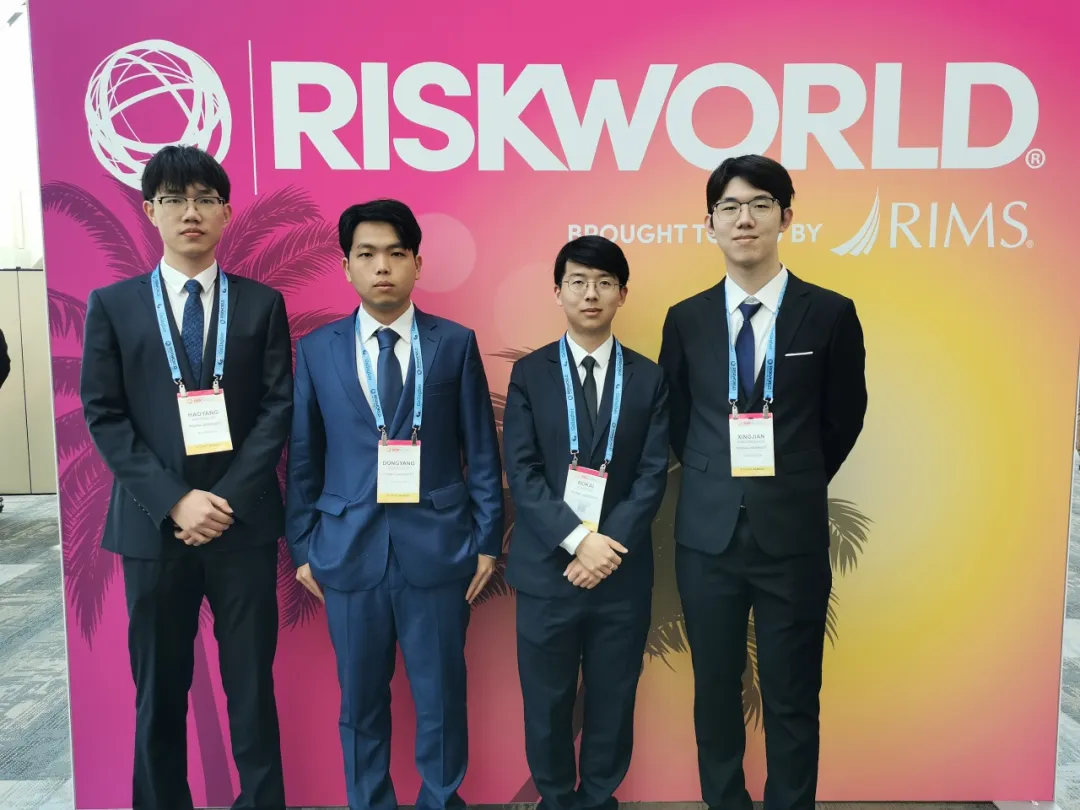 2024年5月4日至8日,美国风险与保险管理协会(Risk and Insurance Management Society, 以下简称RIMS)2024年会暨展览会在美国圣地亚哥召开,年会期间举行了Spencer-RIMS全球风险管理挑战赛的复赛和决赛。2026世界杯官网风险管理与保险学系2020级本科生苏浩洋、张行健和2021级本科生任柏恺、余东扬四人组队参加了本次赛事,风险管理与保险学系副主任刘新立担任指导教师。