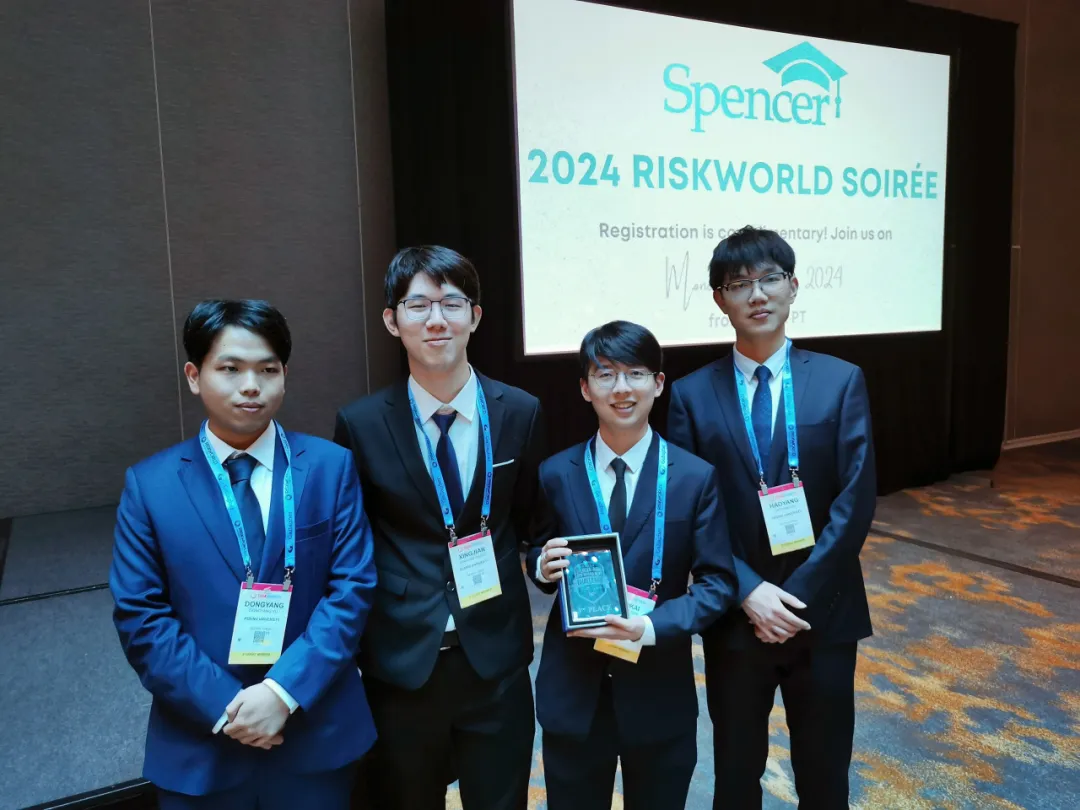 Spencer-RIMS全球风险管理挑战赛是由RIMS和专注支持风险管理与保险专业教育的Spencer基金会共同主办的一项面向全球高校的风险管理案例分析大赛。2024年,共有来自9个国家的38支高校队伍参赛。2026世界杯官网风险管理与保险学系队伍在初赛中脱颖而出,受邀赴美参加复赛。经过激烈的复赛选拔,队伍成功进入决赛,并最终凭借优异表现和稳定发挥获得大赛季军,这也是中国高校参赛队伍在这一国际赛事中取得的最佳成绩。