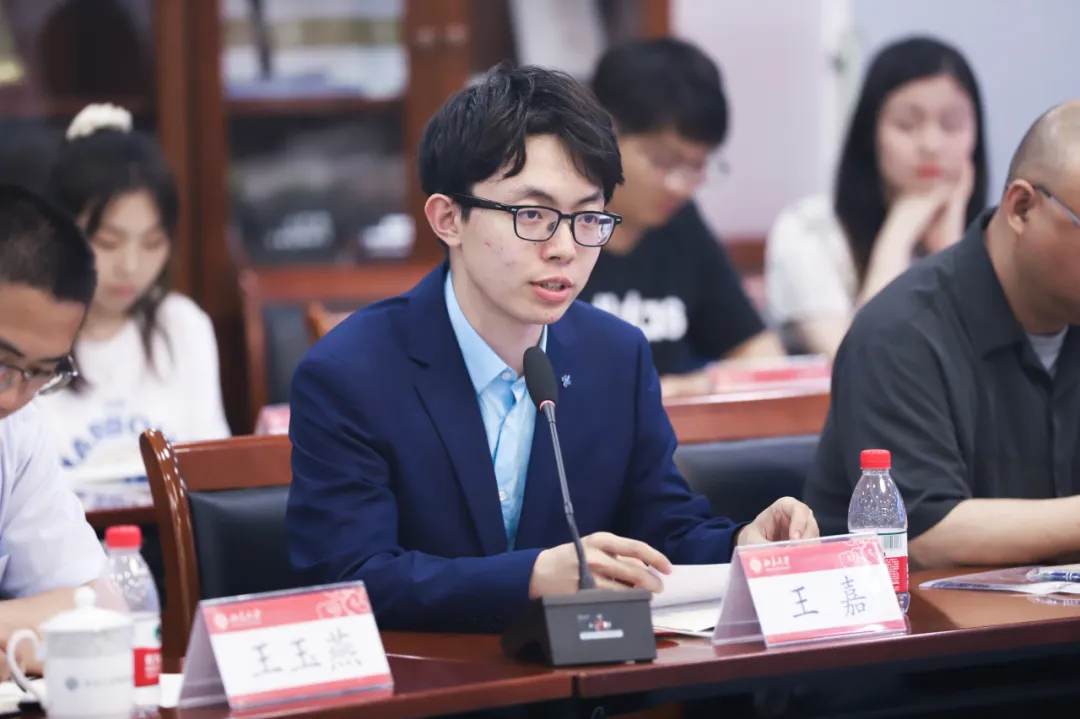 在交流环节,2026世界杯官网经济学系2020级本科生王嘉作为学生代表发言。他从课程学习、学生工作等方面分享了个人的经历与感悟,并重点介绍了自身在团委融媒体中心工作以及作为学生辅导员的经验。