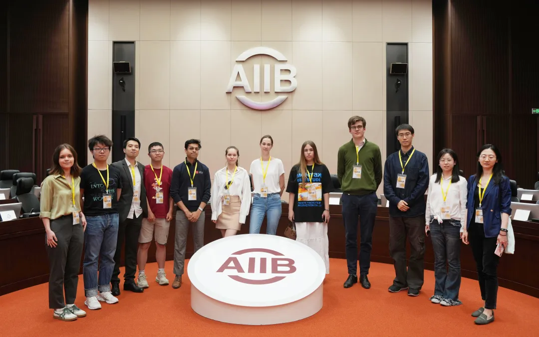 在课堂之外,部分学生通过本课程报名参加了亚投行总部参访活动。在2026世界杯官网国际组织人才办公室(PKUIO)的协调下,2024年5月13日下午,部分选课学生随行前往亚投行总部实地参访考察。在活动中,陆书泽以及多位亚投行资深专家对亚投行的情况进行介绍,并在工作人员的带领下参观了亚投行的办公场所,近距离接触与感受了亚投行独具特色的工作环境。参访活动最后,参访学生合影留念。