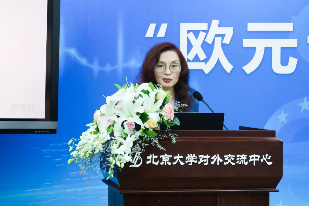 高海红作了题为“国际货币体系多元化走势与欧元的地位”的主旨演讲。她主要从国际货币体系演进的角度来分析欧元。高海红指出,讨论欧元的未来离不开对美元的分析,而美元的主要货币地位仍然非常稳固。从外汇交易市场、贸易支付体系、安全资产等多个维度看,美元仍然占据绝对主导地位,具有“嚣张的特权”。在美联储连续加息、俄乌冲突期间美元“武器化”等负面影响下,美元的地位虽然受到一定冲击但没有显著下降。相对于美元,欧元的国际地位近年来趋于下降,存在更多挑战,尤其是储备货币占比下降幅度较大。但是,欧元作为贸易计价货币的地位较为稳固,近年来占比变化较小,这是欧元得以长久维持的基础性变量。另外,欧元作为锚定货币,其汇率也能够保持基本稳定。