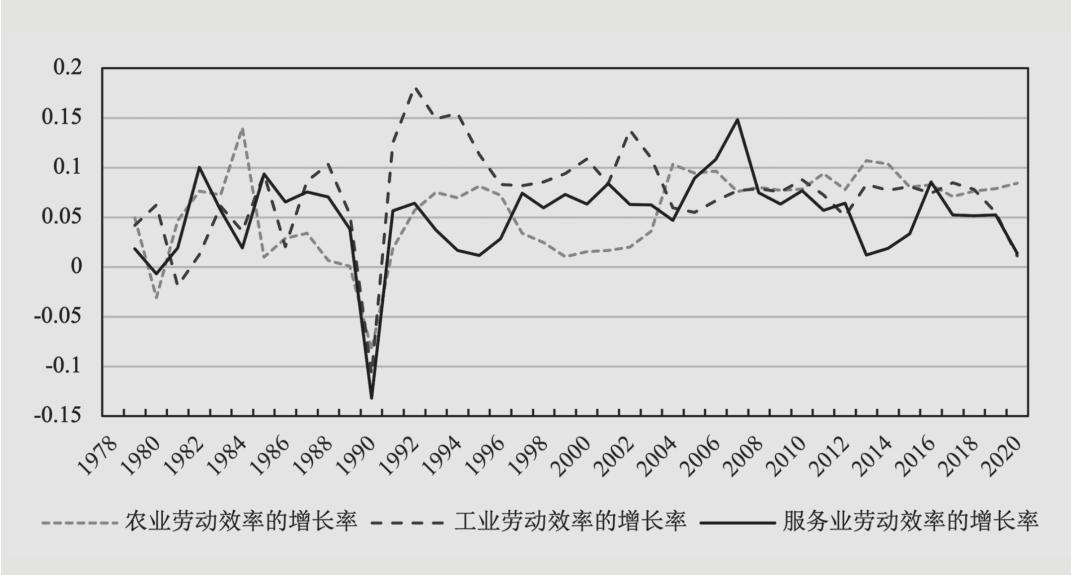 图2 1978~2020年中国三次产业劳动效率增长率变化趋势