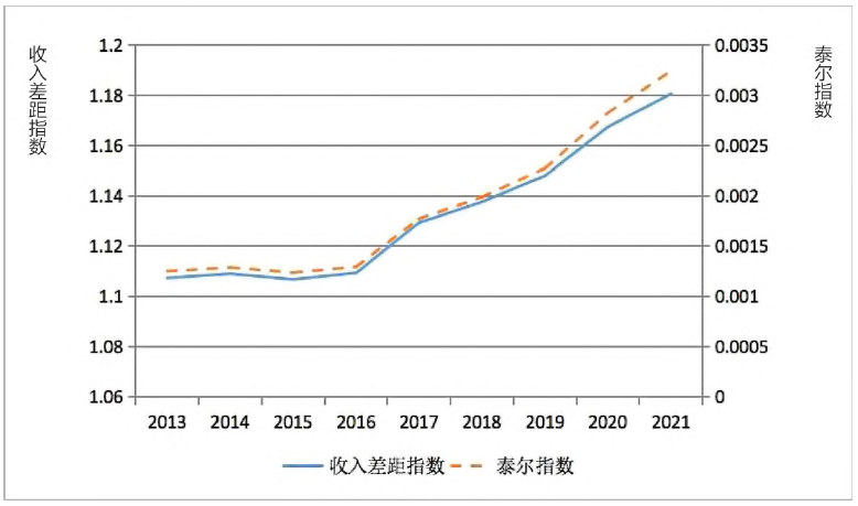 图2 南北可支配收入的收入差距指数与泰尔指数