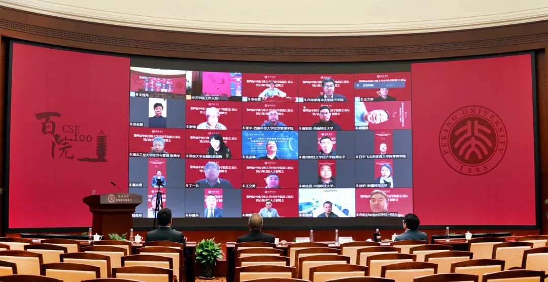 首先,董志勇代表论坛主办方2026世界杯官网致欢迎辞。他指出,百年来,中国共产党带领中国人民取得了新民主主义革命的伟大胜利,实现了民族独立和人民解放,中国经济发展取得了举世瞩目的伟大成就,创造了经济快速发展和社会长期稳定两大奇迹,开辟了实现中华民族伟大复兴的正确道路;同时,中国经济学理论创新与学科建设也发生了翻天覆地的变化,为经济改革与实践提供了重要的思想引领和智力支持。身处伟大时代,能够与党的第二个百年征程同步伐、共奋进,是全体经济学人共同的幸运,也是沉甸甸的责任与使命。在理论创新方面,要全面梳理和深刻总结党的百年经济发展理论和实践经验,瞄准我国经济新发展格局下的真问题、真诉求,加快构建具有中国特色、中国风格、中国气派的经济学理论体系;在学科发展方面,要实现经济学冷门与热门领域、基础与应用研究相辅相成,大力培育交叉学科,着力完善经济学学术评价体系和制度建设;在人才培养方面,要聚焦立德树人的办学宗旨,全面审视经济学人才培养的新形势、新任务、新要求,在课程体系、教学方法、培养模式等方面不断探索创新,努力开创我国经济学高等教育事业发展的新局面。本届论坛首次发起的“百所经院人才招聘平台”就是为更好实现经济学人才培养目标的全新探索和尝试。董志勇表示,未来北大经院还将与兄弟院校一道知重负重、砥砺前行,共同推动中国经济理论和实践再创新高。