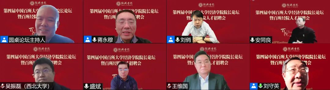 围绕着“解读中国经济实践,构建中国特色经济学理论体系”的核心议题,结合当前经济学教学、科研、应用中的实际情况,本届论坛的圆桌论坛分为“中国共产党百年经济发展理论与实践”“经济学教育如何全面落实立德树人根本任务”“新征程历史使命与经济学理论创新”“经济学研究的国际化与本土化”“经济学研究如何服务国家和地方发展需求”五个主题。