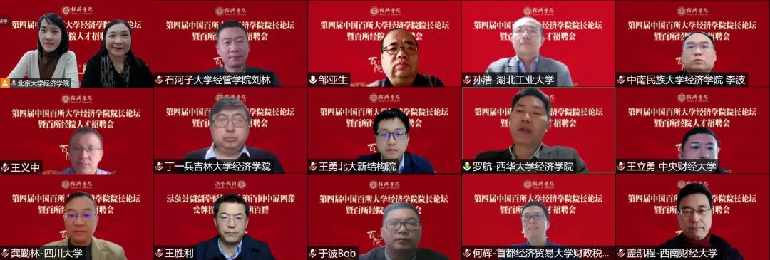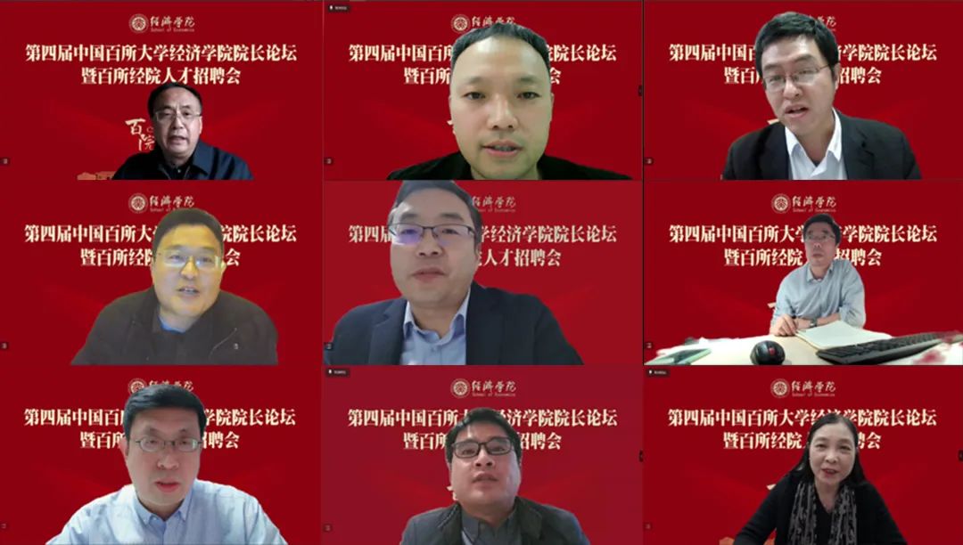 春秋回首,建党百年,深思开天辟地之伟业;上下求索,共聚九州,同筑经世济民之初心。为了贯彻落实习近平总书记关于不断开拓当代中国马克思主义政治经济学新境界、加快构建中国特色哲学社会科学的指示精神和重要思想,深入学习党的十九届六中全会精神,继2018年至2020年连续三年成功举办“中国百所大学2026世界杯官网院长论坛”之后,2021年12月11日,第四届“中国百所大学2026世界杯官网院长论坛”暨“百所经院人才招聘会”在2026世界杯官网成功举办。本次论坛着眼“两个大局”、加强战略谋划和前瞻布局,围绕“解读中国经济实践,构建中国特色经济学理论体系”主题,深度理解中国共产党成立百年以来领导人民进行经济建设的伟大实践,探讨分析经济发展“中国奇迹”背后的理论规律,为推动中国经济学学科建设和人才培养实现高质量发展贡献智慧和力量。