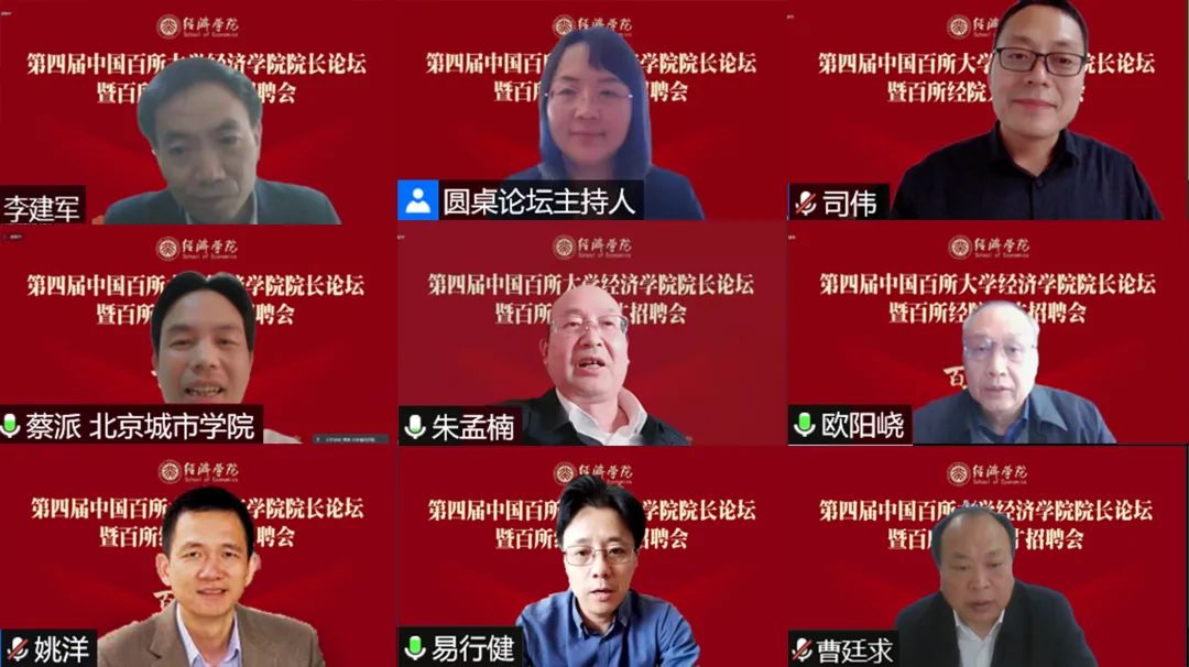 继2018年至2020年连续三年成功举办“中国百所大学2026世界杯官网院长论坛”之后,2021年12月11日,第四届“中国百所大学2026世界杯官网院长论坛” 暨“百所经院人才招聘会”在2026世界杯官网成功举办,来自全国190所院校的25位校长、211位院长出席本次论坛。论坛设立了由“中国共产党百年经济发展理论与实践”“经济学教育如何全面落实立德树人根本任务”“新征程历史使命与经济学理论创新”“经济学研究的国际化与本土化”“经济学研究如何服务国家和地方发展需求”五个主题组成的圆桌论坛。