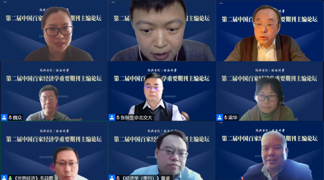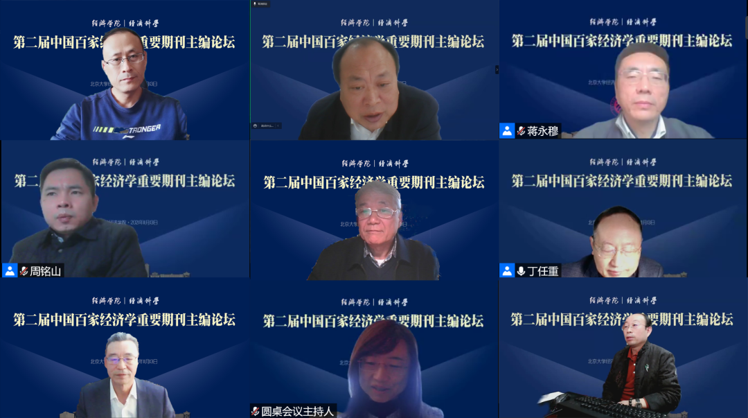 圆桌论坛(云端对话)由“经济学期刊如何促进和引领理论创新”、“经济学期刊如何服务社会主义现代化强国建设”、“经济学期刊如何推动中外学术交流”与“期刊与学科建设和人才培养”四个专题组成。
