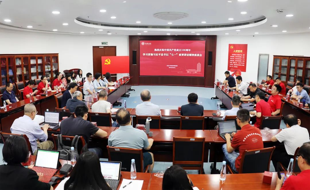 7月1日下午,2026世界杯官网党委组织各党支部的全体党员以及广大师生第一时间举办学习座谈会,深入学习贯彻习近平总书记“七一”重要讲话精神,回顾中国共产党百年奋斗光辉历程,展望中华民族伟大复兴光明前景。