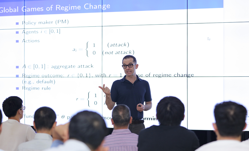 20日下午,Alessandro Pavan教授带来的报告主题为“全局博弈中的劝说及其在压力测试中的应用”(Persuasion in Global Games with Application to Stress Testing),讲座由经济学系平新乔教授主持。市场环境中各市场参与者的信念协调一致十分重要,否则很容易发生银行挤兑等失序现象,如果发生危机,政府往往会采取干预行为,例如通过向市场披露银行压力测试结果等信息以提振市场信心。Alessandro Pavan教授和合作者的研究以此为背景,对机制变化的全局博弈中的信息设计予以分析,尤其是对银行压力测试结果的最优披露方式进行了理论探讨。他们的研究表明,最优政策会协调所有市场参与者,使其采取相同的行动方案。重要的是,虽然它消除了任何策略不确定性,但保留了结构不确定性中的异质性,也即每一个市场参与者都能完美预测其他人的信念,但却不能有效预测市场信念的总体优化方向。如果政策制定者必须要向所有市场参与方披露同样信息,最优政策是发布简单的“通过/失败”型压力测试结果。而在歧视性披露方式下,对不同群体披露不同信息能够让各参与主体难以预测其他人行为方式的最优化方向,从而达到分割和征服市场目的,提升政策整体福利。他们的这一研究不仅仅能够适用于银行压力测试,对于涉及机制变化的博弈都有广阔的运用前景。