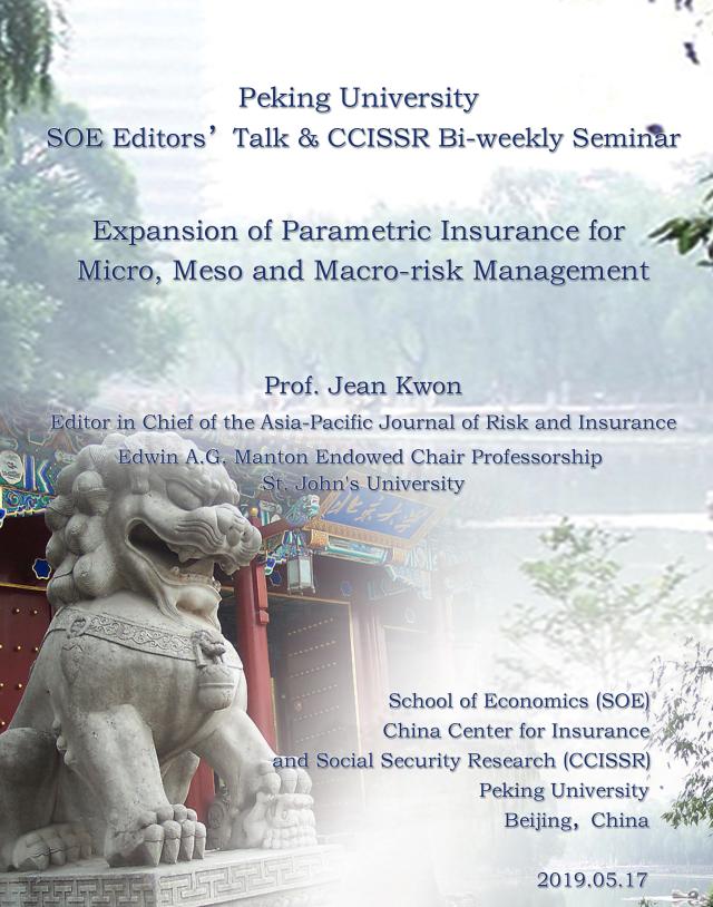 “主编讲坛”Jean Kwon教授系列讲座第五讲: 参数化保险发展对微观、中观、宏观风险管理的影响