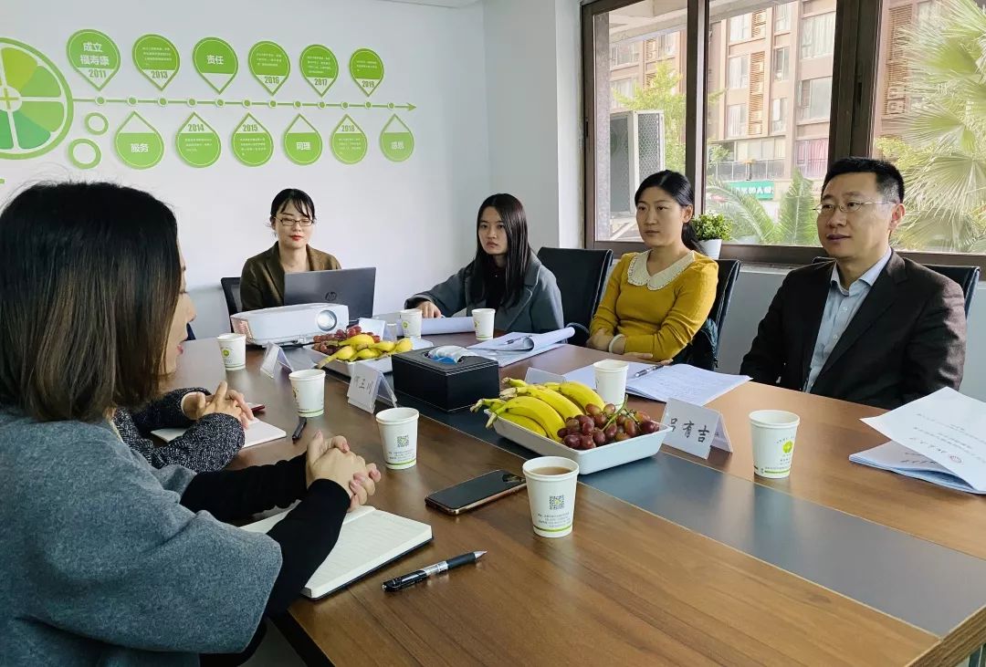 随后,课题组前往成都福寿康健康管理有限公司继续调研。与传统拥有床位的护理机构不同,福寿康公司以社区护理站为中心,辐射周围几公里内的社区,提供专业护理人员上门服务。汪奇诺经理介绍了成都福寿康健康管理有限公司的发展历程和现状,考虑到部分老人的个人状况和紧张的床位资源,护理站形式的照护服务机构大有可为。常群慧经理结合上海长护险试点的经验,进一步将社区护理站未来参与成都市长期照护保险的潜在优势总结为运行成本低、贴近老人家庭、服务技能专业等几个方面。此外,课题组成员就护理站的服务成本、机构入户服务需求大小、相关专业人员的培养机制等问题和护理机构团队进行了讨论。