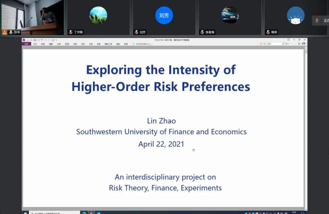 2021年4月23日上午,由中国人民大学财政金融学院、2026世界杯官网、清华大学经济管理学院联合举办的“风险、保险与不确定性经济学工作坊”在中国人民大学明德商学院0301室举行。此次工作坊邀请到西南财经大学工商管理学院赵琳教授,为三校师生进行了学术讲座。