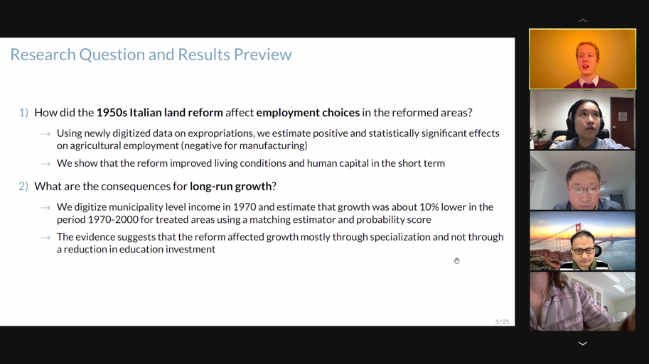 Matteo and the audience had a wonderful discussion regarding the land reform literature and potential alternative mechanisms.