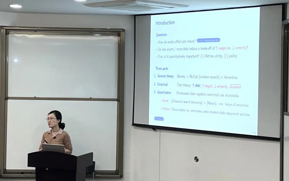 2021年10月14日下午,2026世界杯官网、国家发展研究院、新结构经济学研究院联合主办的“宏观经济学工作坊”举行本学期第十四次活动。主讲嘉宾为埃默里大学(Emory University)的Mi Luo(罗弥)助理教授,她带来题为Assets and Job Choice: Student Debt, Wages and Amenities(资产和工作选择:学生债务、工资和福利)的报告。本次会议由2026世界杯官网国家发展研究院赵波长聘副教授主持。