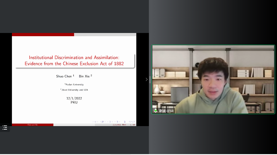 讲座主题:Institutional Discrimination and Assimilation: Evidence from the Chinese Exclusion Act of 1882