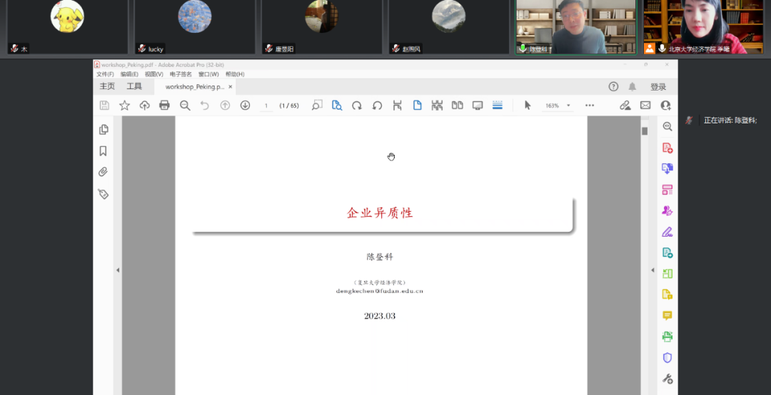 首先,陈登科介绍了企业异质性问题的研究背景。异质性企业模型被较为广泛地应用至国际贸易、能源环境与发展转型等多个经济学研究的分支领域。企业全要素生产率的衡量是这类研究中的关键问题。在宏观理论模型的初期发展中,企业是同质的,往往以代表性企业的特征构建模型。随着理论的发展,人们进一步关注企业的异质性,需要刻画企业的全要素生产率(TFP),然而TFP与最优误差很难剥离开来。为解决这一问题,最经典的方法为Olley和Pakes提供的方法,被称为OP方法。此后的模型方法均是在OP方法上拓展起来的。随后,他逐一介绍了OP方法及后续模型的发展脉络,详细分析了各模型方法步骤的优缺点及模型间的内在联系。最后,陈登科总结对比了动态面板数据和结构估计处理这些模型时的优劣势。尽管两种应用方法各有不同,但都不是占优方法,研究时需要根据具体情况来考虑。