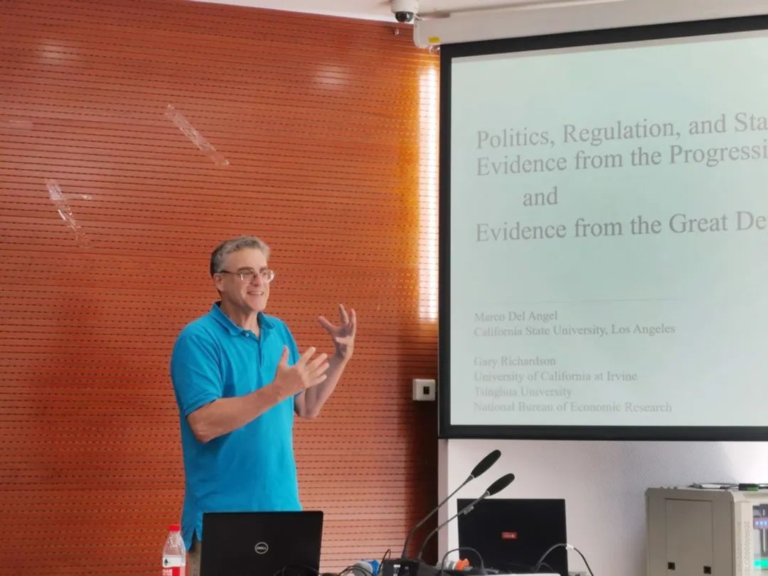 讲座过程中,Richardson用大量生动的故事深入浅出地讲解了他的研究发现。与会老师就是否存在完全的金融监管独立、州长推迟银行处置之后连任概率是否更高、选举更激烈时效应是否更大、选举时政客是否无暇处理银行失败等问题与主讲人进行了探讨。
