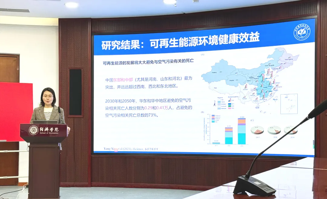 谢杨的讲座主要包含了能源转型、转型技术与减排成本、空气质量以及脱碳成本效益分析。讲座上讨论了气候变化与大气污染对公众健康造成的严重威胁。这些环境因素不仅导致了巨大的社会疾病负担,还对经济发展造成了显著的负面影响。为响应这些挑战,中国提出了“美丽中国”“健康中国”以及“双碳”目标等战略举措,旨在改善空气质量、减缓气候变化并提高公众健康水平。