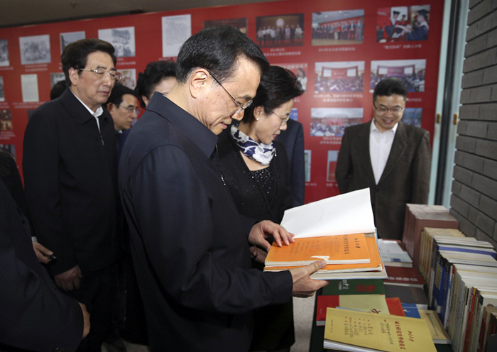 李克强总理饶有兴趣地查看文献