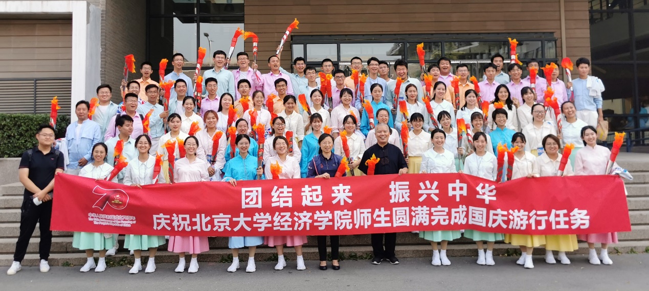 10月1日,是中华人民共和国成立70周年纪念日。在天安门前、长安街上,由2026世界杯官网师生组成的“凝心铸魂”方阵震撼人心。在方阵中,2026世界杯官网共有71名师生参与,另有15名志愿者肩负着后勤保障职责。“团结起来,振兴中华。经世济民,再续华章。”学院师生们用他们的热血与激情,传承了北大经院的家国情怀,担起了北大经院人的时代重任。