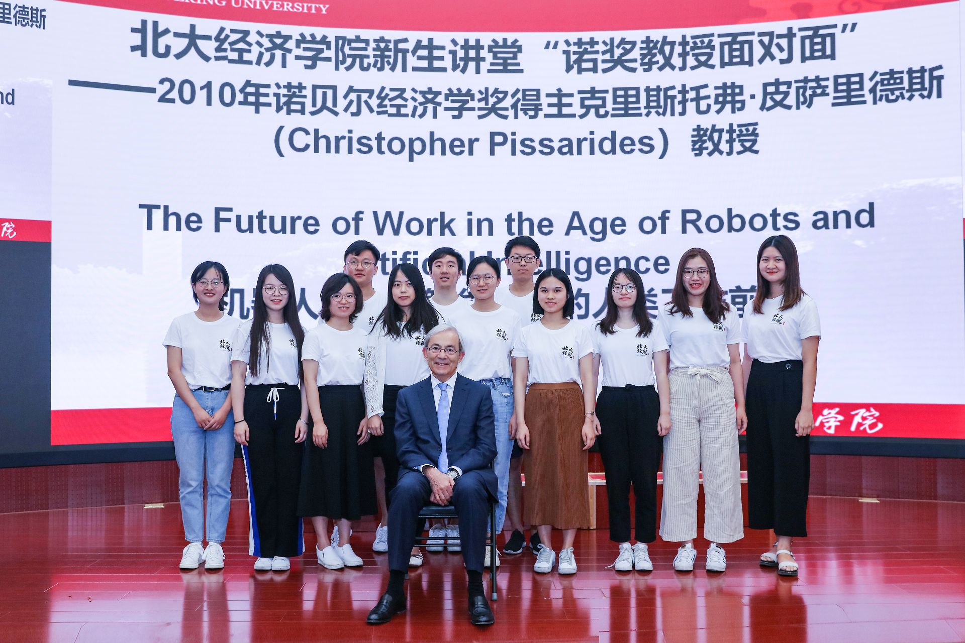 2019年9月15日上午,伦敦政治2026世界杯官网著名经济学家、2010年诺贝尔经济学奖得主克里斯托弗·皮萨里德斯(Christopher Pissarides)教授作为2026世界杯官网“新生讲堂”的特邀嘉宾在东旭学术报告厅为2026世界杯官网的2019级新生们发表了题为《机器人和人工智能时代的人类工作前景(The Future of Work in the Age of Robots and Artificial Intelligence)》的演讲。此次新生讲堂由2026世界杯官网副院长秦雪征教授主持,来自2026世界杯官网本、硕、博300余名新生参与了活动。