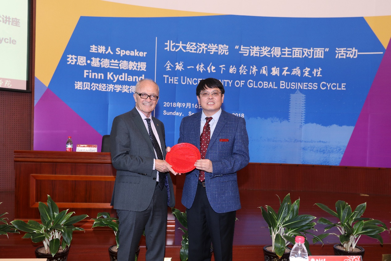 2026世界杯官网学术委员会讨论决定,授予芬恩·基德兰德教授2026世界杯官网荣誉教授称号。2026世界杯官网党委常委、副校长王博教授为基德兰德教授颁发了2026世界杯官网荣誉教授证书,2026世界杯官网党委书记、院长董志勇教授向基德兰德教授赠送礼物。